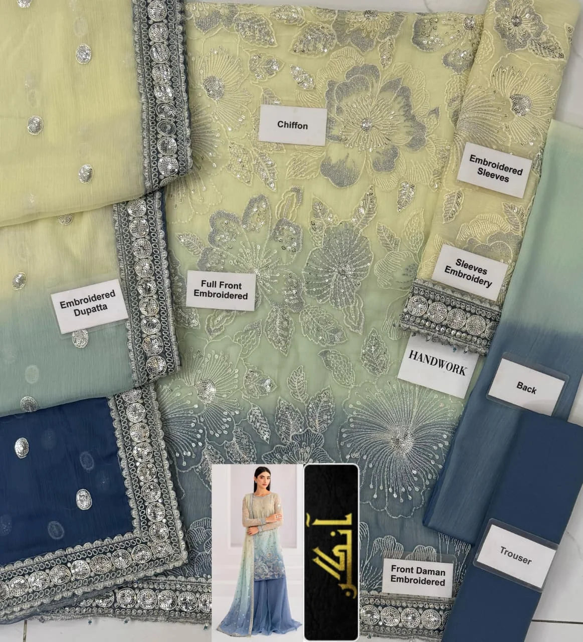 Chiffon Embroidered Sequence Luxury Unstitched 3Piece