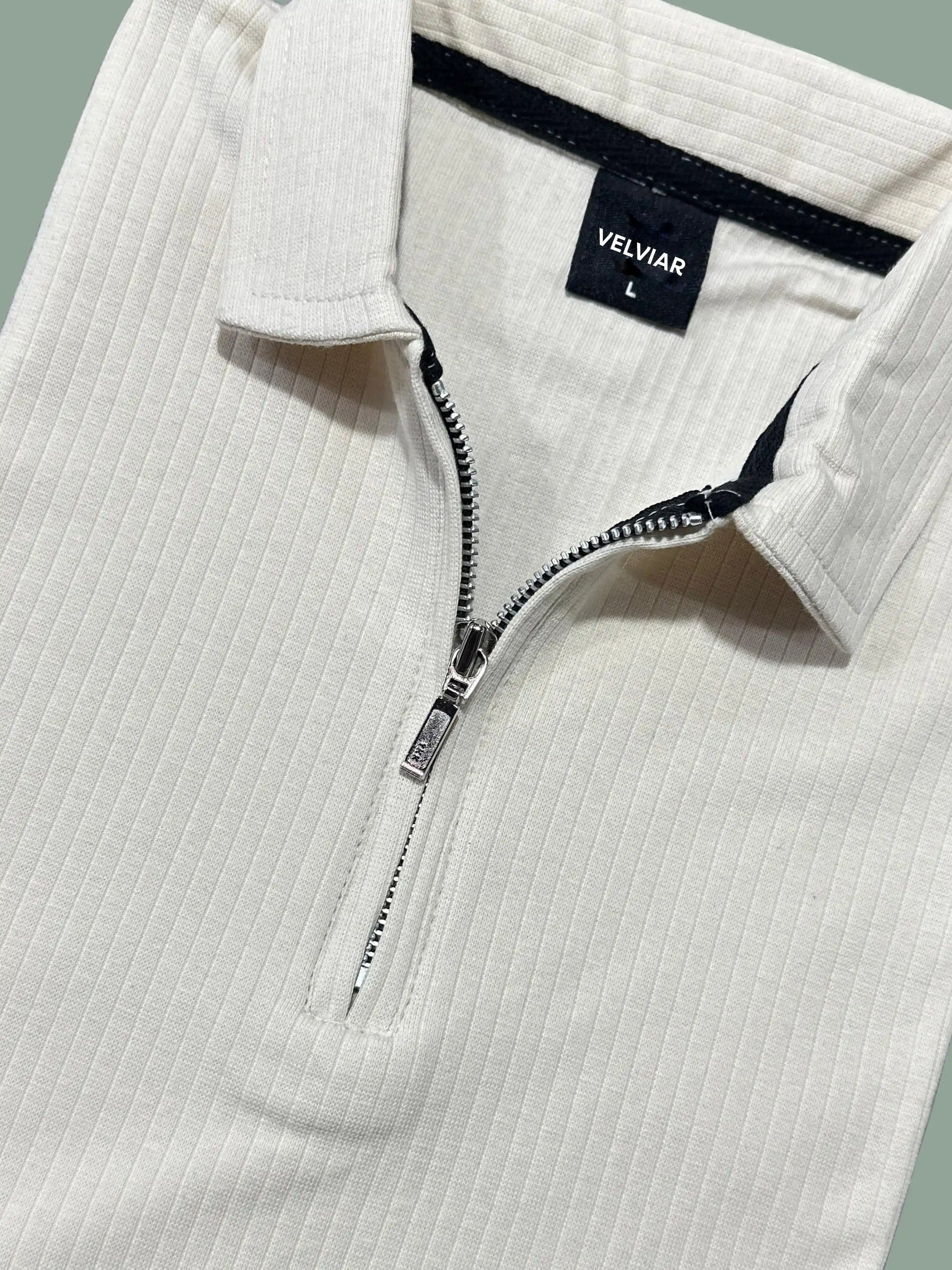 Knit Zip White Polo Shirt & Black Drawstring Trouser