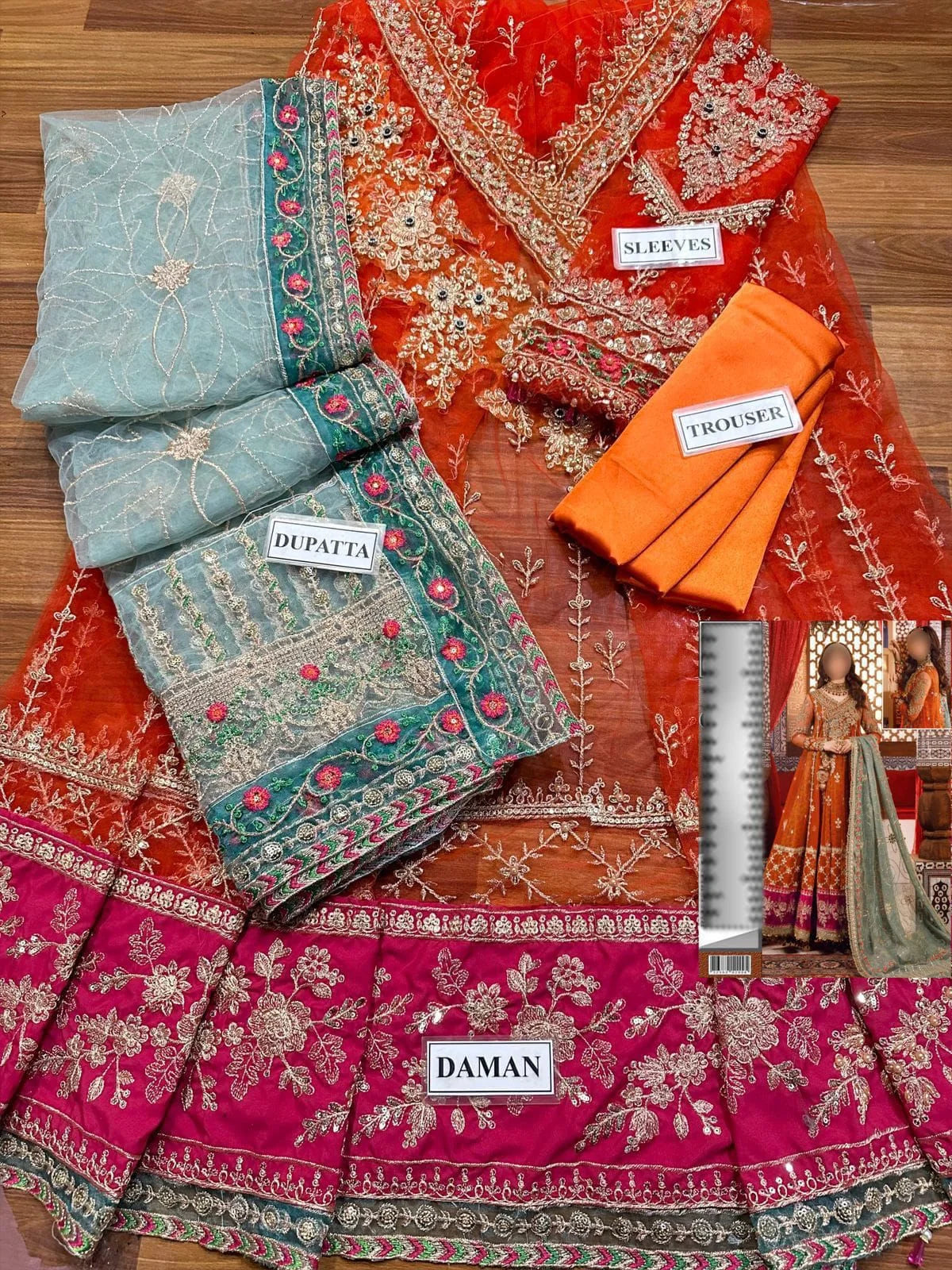 Net Maxi Embroidered Hand Work Embellished Luxury Unstitched 3Piece